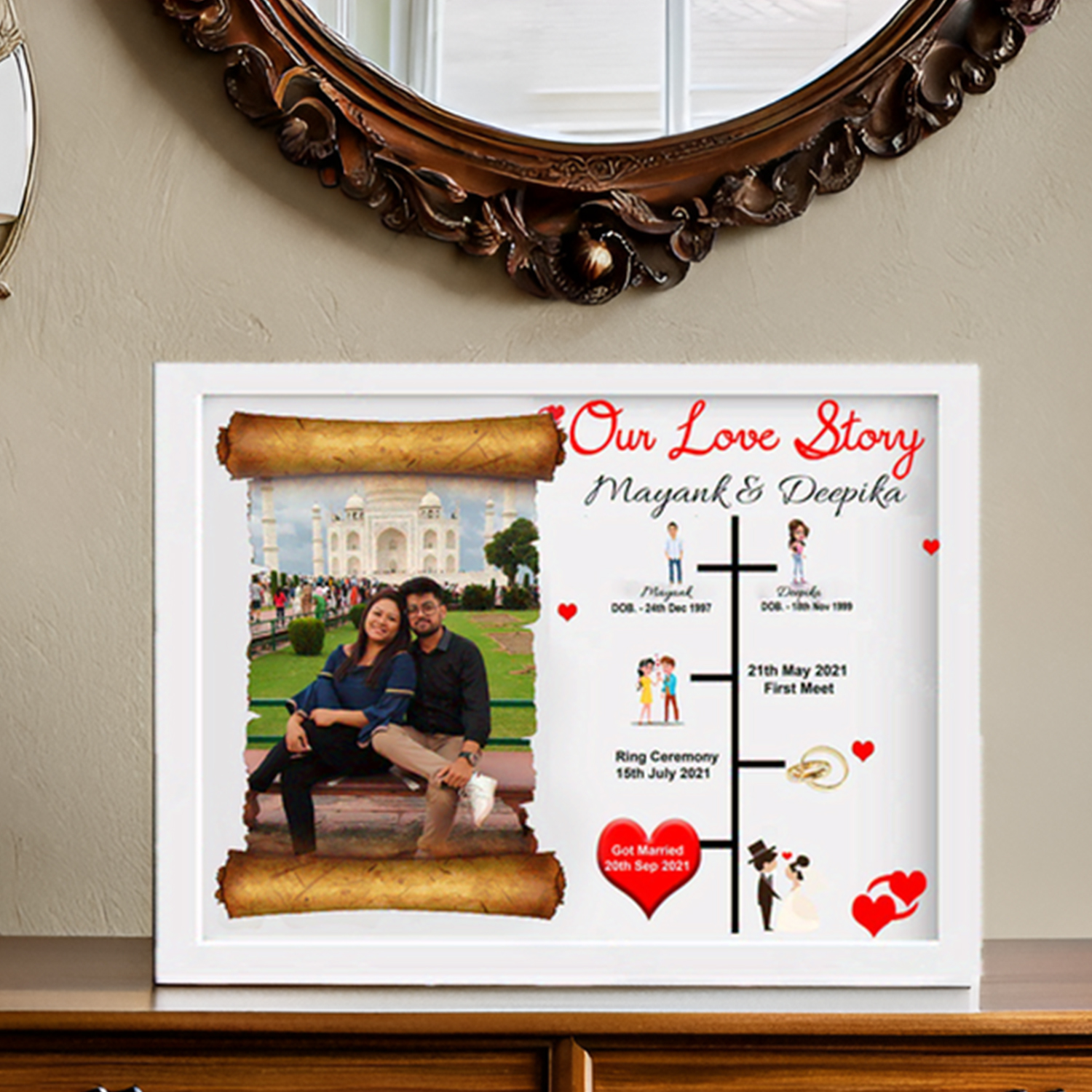 Celebrate love in a truly special way with the SAI UNIQUE GIFTS Customized Love Story Photo Frame. This personalized photo frame is designed to capture the most meaningful moments in your relationship, making it the perfect gift for anniversaries, weddings, or any romantic occasion. Whether for your partner, spouse, or a dear friend, this customized photo frame adds a personal touch that will be cherished forever.